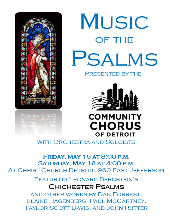 Our concerts with orchestra will be Friday, May 15th, and Saturday, May 16th, 2026 at Christ Church Detroit, and our repertoire will include works by Leonard Bernstein featuring his Chichester Psalms, John Rutter, Dan Forrest, Taylor Scott Davos and others. Save the dates!